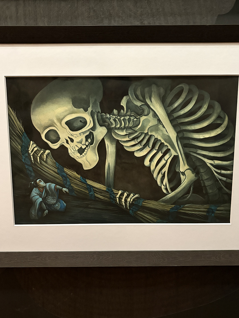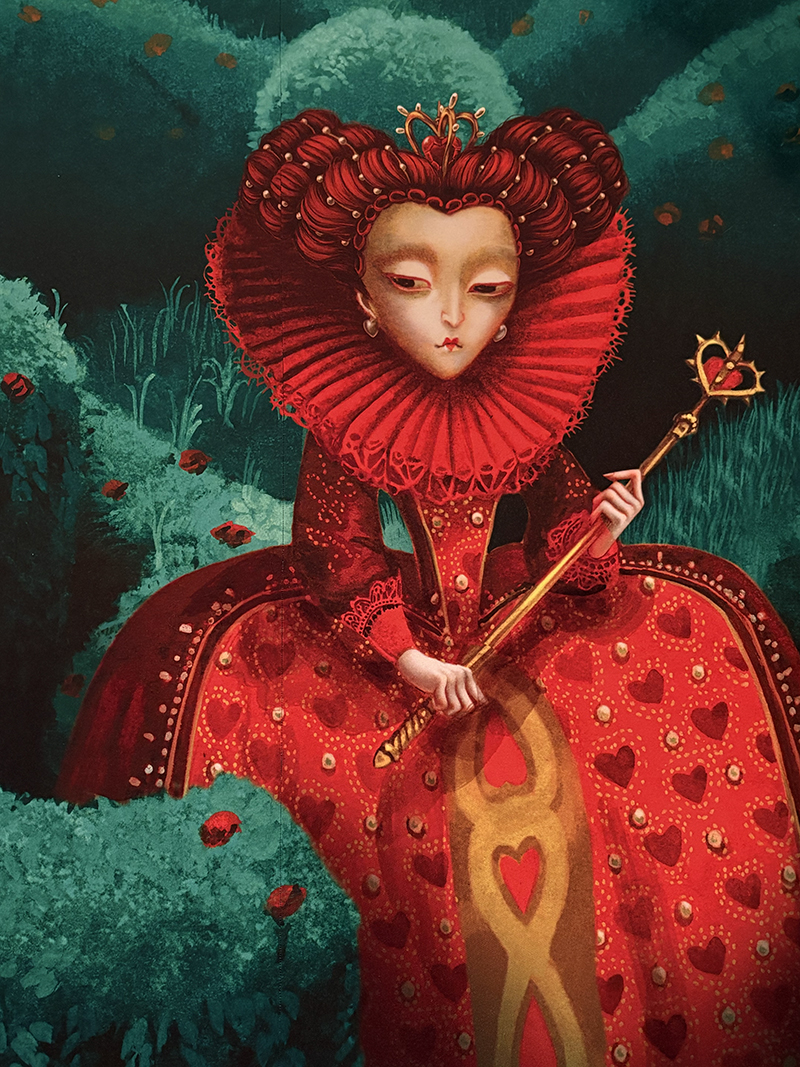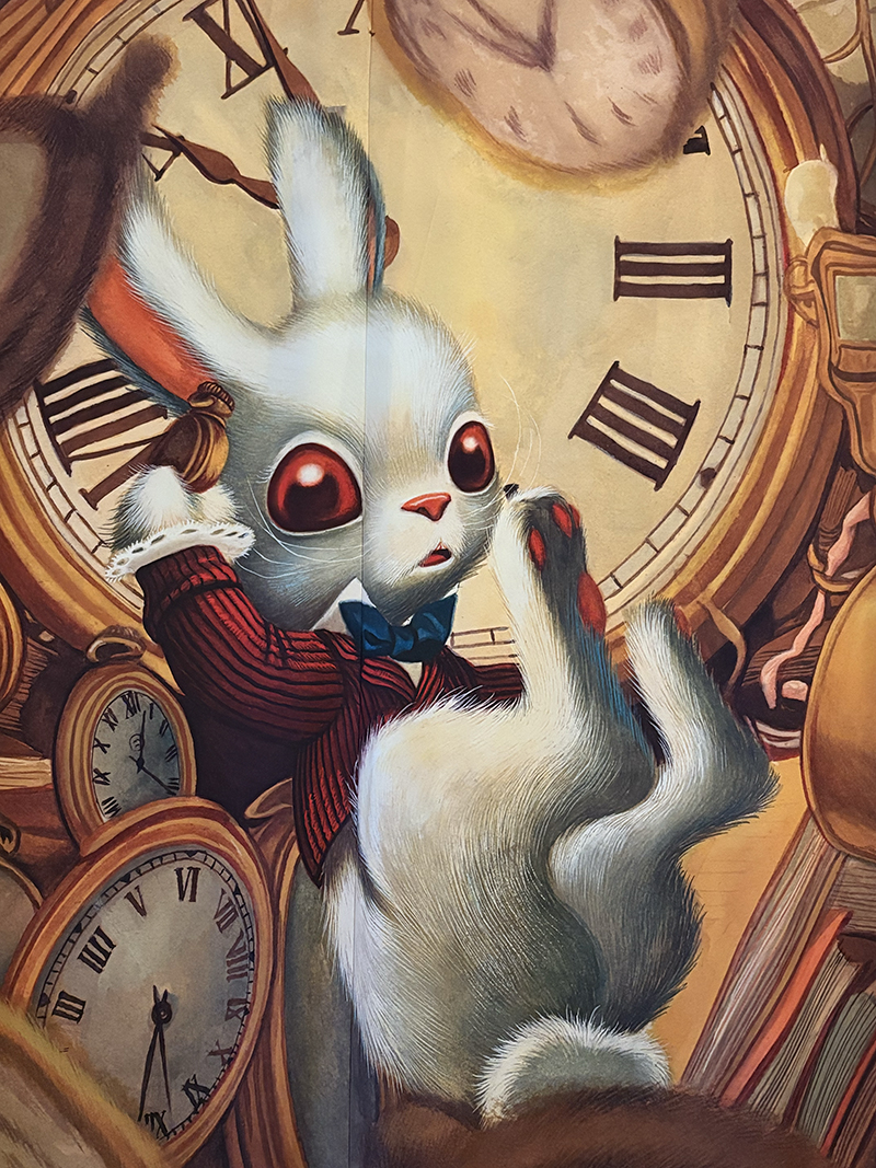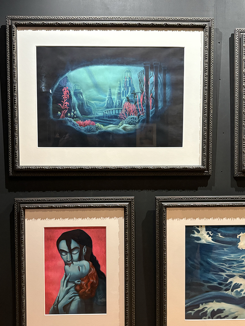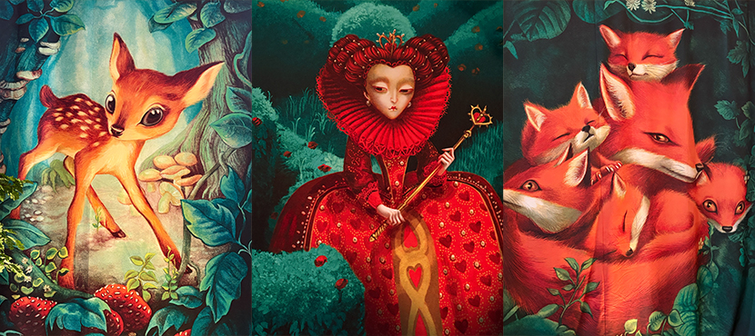 L’exposition n’est pas immense mais largement suffisante pour passer une parenthèse hors du temps, être plongé dans l’univers fantastico-onirique de Benjamin Lacombe et découvrir ses œuvres majeures : Alice au pays des merveilles, Bambi, La Belle et la bête, La petite sirène, Le portrait de Dorian Gray, Gatsby le magnifique, Frida, etc. Un fil rouge se dessine entre ces œuvres : les contes, l’enfance, le Japon, les figures mythiques…